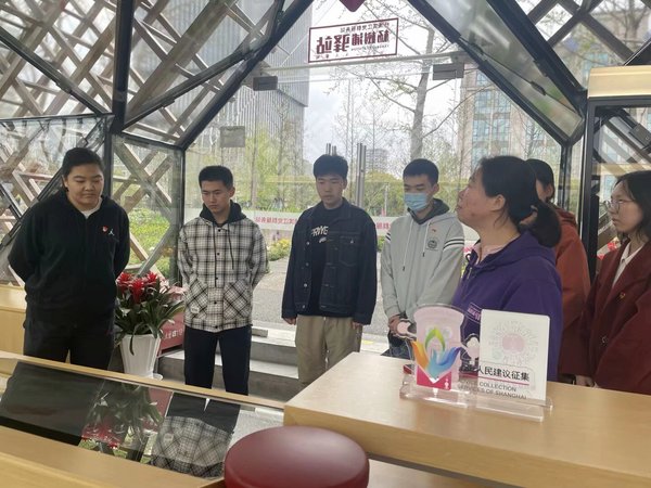 在与讲解员的互动中,支部成员通过VR技术体验滨江党建地图,了解党群服务中心服务党员及群众的设立初心、发展历程,学习习近平总书记考察上海重要讲话精神,树立“作为能源电力特色高校学子,要聚焦城市治理‘最后一公里’,将专业所学融入便民服务创新”的奋斗决心。