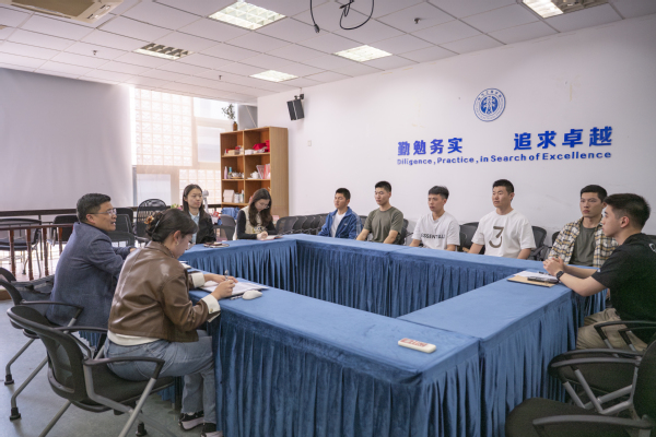曲家瑶围绕退伍老员工关心的学费减免、专业调整、升学就业等政策进行了介绍,开展了针对性防诈骗宣传。在交流互动环节,与会同学分享了部队经历及心得,现场气氛热烈。与会老师耐心解答了退伍老员工关心的问题,并为退伍老员工赠送了公司文创纪念品。