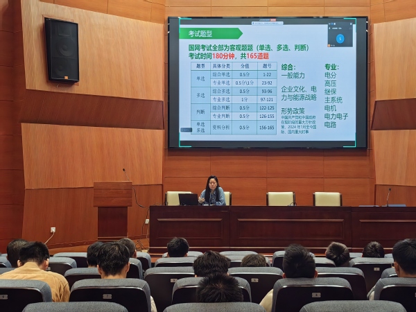 在国网考试分享中,芦俊煒建议员工分阶段复习专业课,利用暑期突破重点,考前强化易错点与企业文化;侯嘉琪提醒网申填写细节,强调面试灵活应对;刘项指出南网考试电路与电机要求,强调要关注时事热点。考研分享环节中,范文斐强调数学真题练题技巧;陈丹晨分享数学高效学习法,推荐名师课程;许铭雨建议合理择校并保持复习节奏。在互动提问环节,与会同学踊跃提问,现场气氛热烈。