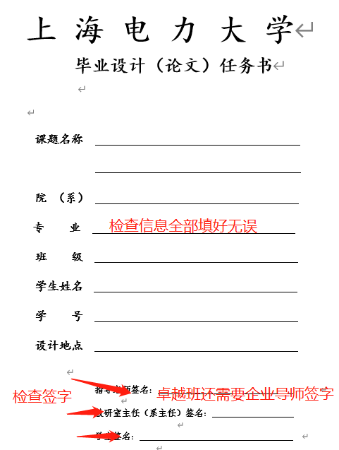 1. 指导老师负责“资料目录”中的1~6项,仔细检查论文格式是否达到基本格式要求,所有签字敲章处是否都齐全;卓越班需要有企业导师。