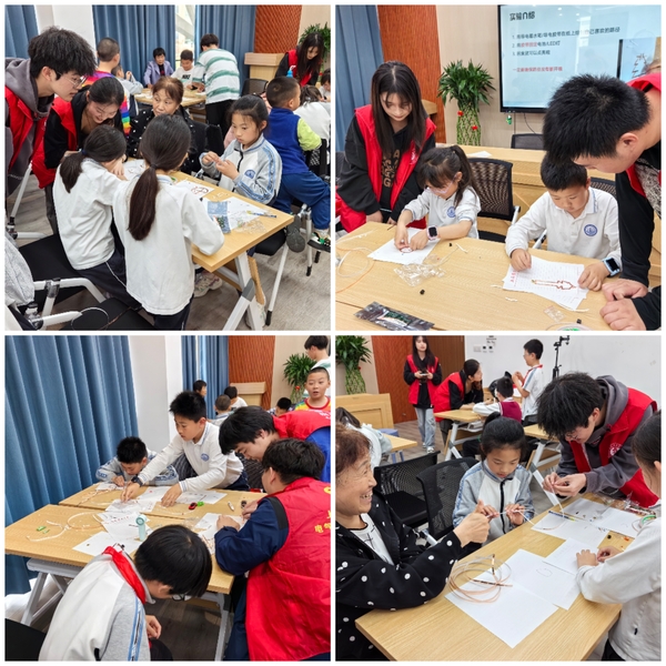 在活动过程中,志愿者团队紧密配合,通过细致的解说和引导,帮助孩子们解决疑问,营造出浓厚的探索氛围。“这个活动特别有意思!我终于知道了火线和地线是什么了。”“用电器真的不能乱动啊,这样会很危险。”在收尾环节,当小朋友们高举手中制作的作品,向家长和社区工作人员展示时,现场洋溢着欢声笑语。