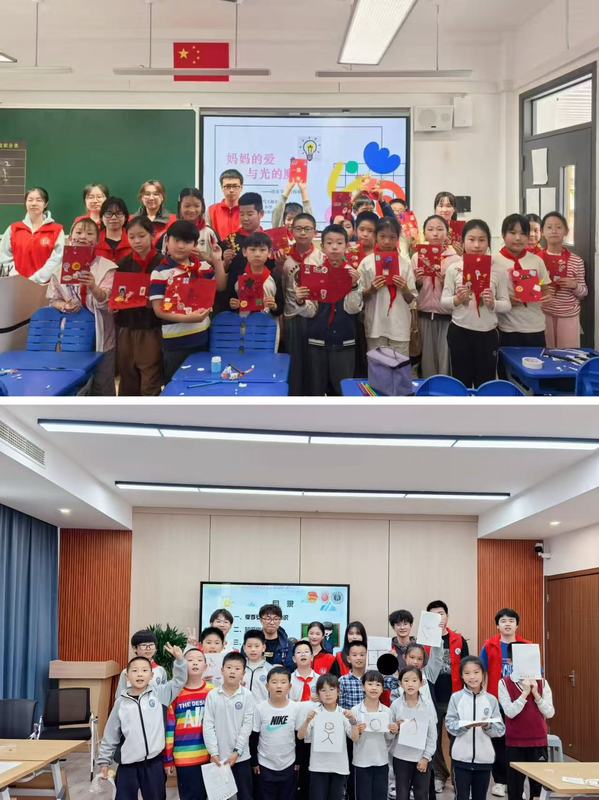 志愿者们还为小朋友们带来“点亮感恩之光”的小实验。小朋友们在志愿者的指导下亲手动手实验,为每位小朋友的妈妈制作了爱心贺卡,以此来向妈妈表达自己的感恩之情。志愿者们化身“魔法师”,发挥自己的专业知识与青春能量,将知识点融入引人入胜的故事,引导孩子们深刻感受母亲的伟大与节日背后承载的深厚情感。从图形设计到LED灯的连接,当一张张贺卡被成功点亮,孩子们脸上洋溢的自豪与喜悦,不仅是对自己作品的肯定,更是对志愿者们辛勤付出的最好的反馈。这份闪耀着“光的魔法”的礼物不仅仅是一堂知识普及课,更是志愿者们用心传递爱与敬意的生动实践。