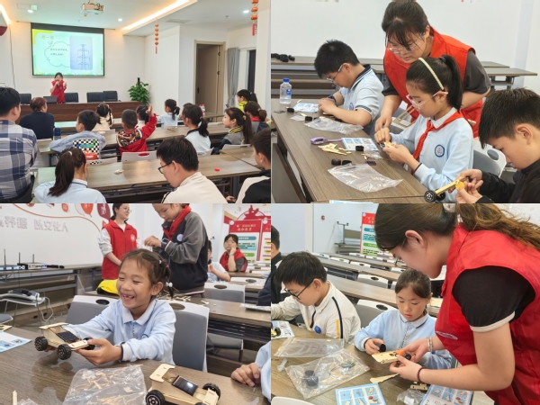 课堂上,志愿者以电力的奥秘为主题,引导青少年思考生活中电的来源,以太阳能的产生为切入点,对传统能源、清洁能源的分类进行了深入浅出的讲解。实验过程中,在详尽了解了太阳能在实际生活中的运用后,小朋友们纷纷化身为“小小电力工程师”,在志愿者的指导下逐步动手完成了对太阳能小车的搭建。光伏板接线到电机调试,孩子们认真观察光驱小车的每一个运动环节,不时发出“原来太阳光真的能变成动力!”的惊叹。