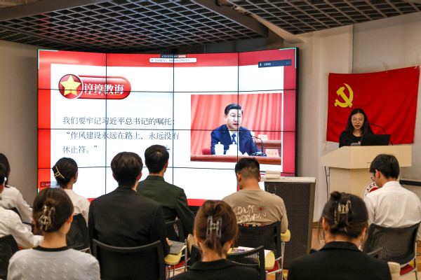 党课引领,明确青年作为。为了全面加强党的纪律建设,党支部书记程蓓佳讲授专题党课。程蓓佳强调,青年党员要坚决破除“四风”,服务同学,清正廉洁,争做模范先锋,并通过分享马克思主义公司杨红娜老师的廉洁教育实践案例,号召党员将遵纪守纪、廉洁务实的精神融入生活点滴,在服务同学中践行初心使命,展现廉洁教育与育人融合典范。