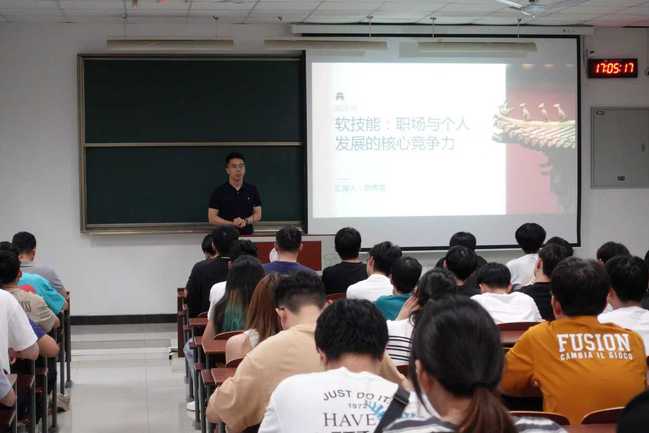 鲁传龙以“软技能:职场与个人发展的核心竞争力”为题展开分享。他强调,沟通、协作、领导力等软技能在职业晋升、团队合作与问题解决中具有不可替代的作用。他指出,软技能并非与生俱来,而是可以通过持续练习与系统培养不断提升。从设定内在目标、锻炼专注力,到坚持阅读与接受挑战以增强学习力与韧性,再到在社交协作中修炼情商与沟通能力,每一步都是对个人成长的有效投资。他希望同学们认识到,在技术快速迭代与工作方式持续演变的时代背景下,软实力已成为应对不确定性、实现可持续发展的关键竞争力,鼓励大家尽早将这一影响职业高度与生活品质的重要因素纳入日常学习与生活中。