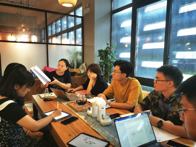 接着,徐仙君老师在仔细翻阅成果册初稿后,针对语言组织、核心亮点突出、排版设计等方面进行详细讲述,并分享了往期优秀队伍的经验。叶华刚老师在线上进行了指导,表示公司会大力支持同学们的实践创新,同时对指导老师和队长、骨干队员提出要求——面对即将到来的“知行杯“复赛,一定要把握机遇,群策群力,一战到底。最后,王海思老师进行会议总结,并对公司社会实践的远期规划提出构想,希望提早准备具有公司特色的实践项目孵化。