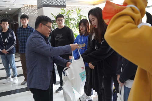 叶华刚代表公司为26名进博“小叶子”发放公司慰问品,对同学们圆满完成进博会志愿者工作表示感谢,他表示同学们起早摸黑,每日步数2万多,用灿烂的微笑和周到的服务,带给了参展宾客深刻的印象,为公司、公司争得了荣誉,践行了良好的志愿者精神。希望同学们继续把志愿者精神发扬光大,带动身边更多的同学热心志愿者服务。