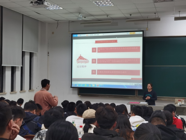 王老师就中国共产党人的第一批伟大精神深入展开,向学员们介绍了延安精神形成的历史条件、主要内容、时代价值以及延安精神所放射出来的时代价值。延安精神主要分为自力更生、艰苦奋斗的创业精神;全心全意为人民服务的精神;理论联系实际、不断开拓创新的精神;实事求是的思想路线四个方面。理想信念层面,通过抗大精神衍生出坚定正确的政治方向;在科学理性层面,通过整风运动联系到实事求是的思想路线;伦理价值层面,通过张思德精神概括出全心全意为人民服务的根本宗旨;在实践意志层面,通过南泥湾精神展现了自力更生艰苦奋斗的创业精神。而这些精神所映射出来的恰恰就是我们所谓的延安精神,这就是延安精神最原生的形态也是延安精神最重要的内容。新时代的我们作为党的后备军、主力军,更应该勇于担当,增强责任意识。延安精神是中华民族优良传统的继承和发展,是我们党的性质和宗旨的集中体现,弘扬延安精神,对于推进中国特色社会主义事业、实现中华民族伟大复兴具有重要意义。