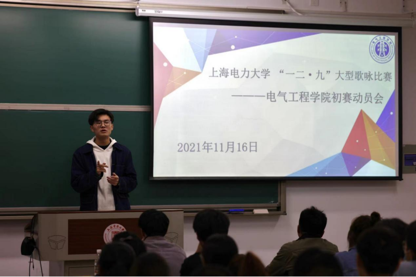 往年冠军获奖班级代表、2020029班文体委员杨洪通过ppt向大家展示了歌咏比赛的形式与流程,在活动筹备、现场表演等方面为同学们分享了比赛获奖经验,并对每个班级在合唱训练中遇到的问题给出了针对性的措施和方法。