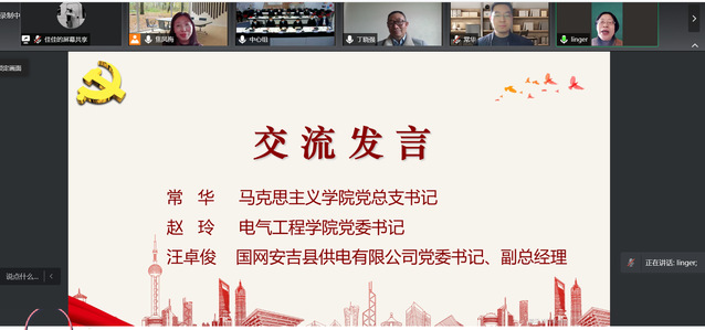 赵玲表示,丁教授的授课深入浅出、耐人回味,让我们充分感受到了一位党史研究者的专业与严谨。3044永利集团、马克思主义公司与国网安吉供电公司共同联建学习,是公司在专业教学课程思政、思政课主渠道以及电力企业用人单位三方在协同育人方面做出的探索和努力,提供了一起学习交流如何在人才培养工作中从党的百年奋斗历程中汲取经验、智慧和力量的机会。疫情当前,我们更要学会在疫情防控的工作落实中弘扬和践行伟大建党精神。