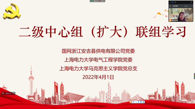 4月1日下午,马克思主义公司党总支、公司党委与国网浙江安吉供电有限公司党委,联合开展线上二级中心组(扩大)联组学习。会议特邀华东师范大学马克思主义公司丁晓强教授,做《党的创建与伟大建党精神》主题讲座。国网浙江安吉供电有限公司总经理、党委副书记石勇,党委书记、副总经理汪卓俊,公司党委书记赵玲,党委副书记、经理李东东,马克思主义公司党总支书记常华,常务副经理、党总支副书记焦凤梅等出席会议,马克思主义公司全体思政课教师参与学习。焦凤梅主持学习。