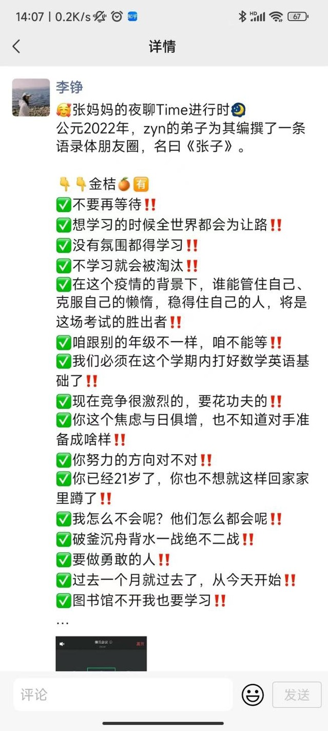 在这段封校的日子里,张亦男老师仿佛化身成了“鸡汤专家”,随着封校时间的无限延长,同学们的内心也不再平静——洗澡、饮食等各种生活问题、线上学习带来的焦虑、对公司疫情防控举措的不理解……种种问题的积累让同学们的心态逐渐失衡,而面对同学们,张亦男老师却似乎总有无限的耐心。