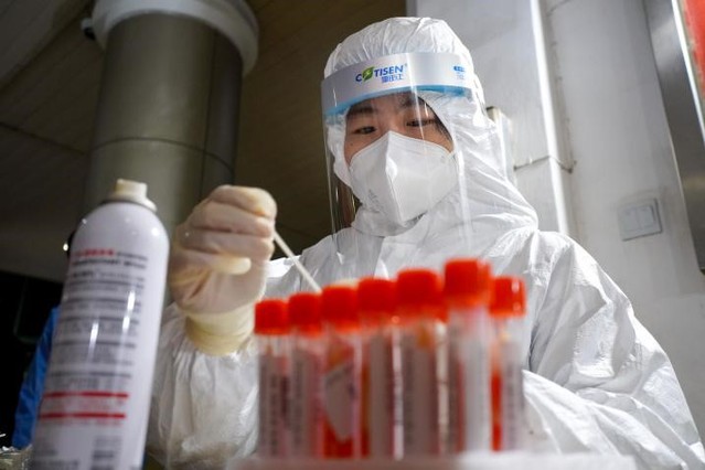 返校后,除了做好同学们心理上的疏导和满足大家日常的需求,张亦男老师还和其他几名辅导员老师一起组成了——“大白”小分队,亲自上阵为同学们进行咽拭子核酸检测。之前从未接触过此类工作的她,从起初的紧张忐忑,到后来熟练如斯,镇定自若地为同学们做好核酸检测采样,也许这就是身为共产党员的使命与责任感,她一坐在那里,眼神中就充满了坚毅。