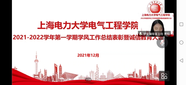 2021-2022学年校优良学风示范班代表李雅文同学分享了班级学风建设优秀经验。她从设立班级学习互助小组、学会利用教学资源、定期找任课教师沟通交流、营造良好班级氛围、定期召开学风主题班会等五个方面,介绍了创建优良班级学风的先进经验。
