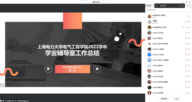 学业辅导室主任贾柏做2022年度学业辅导室工作总结报告。她围绕公司学风组织建设、学风制度建设、落实学业帮扶、开展学风激励、促进学风建设等八个方面取得的工作成果,向与会人员进行了总结汇报。