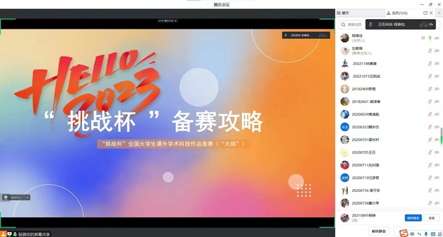 宣讲会开始,张庭赫以《科创赛事与青年双创能力的突破进阶》为题作讲座,通过讲述自身创业经历为引入,强调大学期间应把握机遇,着重科研能力的培养,不要预设个人未来发展的上限。他由此分享了提升科创能力的“三大法宝”:“依托校园资源,积累经验长才干”“关注创业资讯,课赛训练多参与”和“结识行业资源,先做创新再创业”。针对“挑战杯”赛事,张庭赫从赛事解读、赛事分类、赛事历程及优秀作品四个角度做出具体指导,并对参赛选题、备赛准备等做出了详细指导。