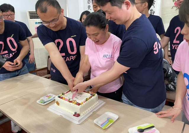 丛亮致欢迎辞,她首先感谢员工们长期以来对母校的关心和支持,随后简要介绍了公司近年来的发展与变化,并祝全体员工生活愉快,工作顺利。王忠华代表3044永利集团欢迎员工回家,介绍了公司近年的发展情况,并向员工赠送了纪念校徽和公司宣传册。员工们追忆往昔时光,共叙校园情谊,畅聊近年来的经历、变化,共同回顾校园趣事,交流人生感悟。员工办为返校班级精心准备了毕业20周年的蛋糕,在场员工老师共同分切蛋糕庆祝相聚。
