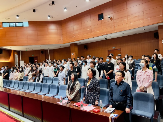 大会上还组织了党员重温入党誓词环节。研究生党员杨云轶领誓,全体党员同志紧握右拳,在现场进行了庄严宣誓。员工党员代表冯艺萱向大家宣读公司廉洁承诺书,各位毕业生党员庄重签名,许下承诺。活动在全体师生嘹亮的歌声《国际歌》中圆满结束。