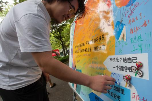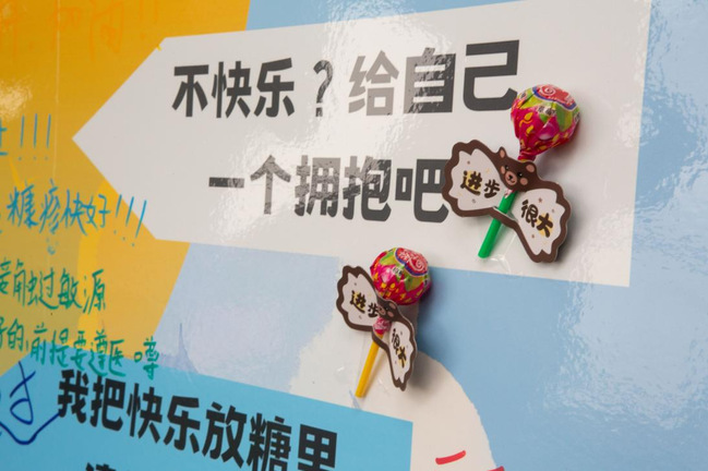 在留言过程中,有的同学写下期末考过的愿望;有的同学留下自己生活中的小惊喜;还有的同学留下送给对方美好的祝愿。无论写什么内容,大家都是专心致志、满怀期待的样子,希望可以把自己的快乐传递给他人,把不快乐分享出来,获得心理安慰。