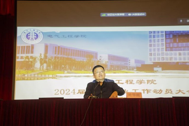 叶华刚介绍了2024年的就业形势及往届毕业生的就业去向情况,并对做好2024届毕业生就业工作做好动员。他希望同学们全面了解正确认识当前就业形势,关注就业信息,确立好个人就业目标,做好就业规划;在求职就业的过程中,要重视个人学业,顺利毕业,尽早就业;面对挫折和困境,要注意调整好个人状态和心态。公司及各位老师将一如既往为各位毕业生同学们做好就业指导、就业信息发布、简历面试指导等相关工作,从同学们的实际需求出发,关注关心就业困难同学,给予每位同学提供相应帮助和支持。他勉励同学们,要谨记“勤勉务实,追求卓越”的院训,勇于担当新时代电气学子的责任,将个人理想与国家需求结合起来,为国家电力事业发展贡献自己的力量。