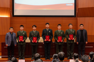 退伍士兵代表熊淳春以朴实生动的言语,讲述了自己“入伍前”、“投身军营”、“退伍后”的身心变化和心路历程。两年的军旅经历不仅磨练意志、强健体魄,还让他学会了不惧挑战、团结互助、珍惜时光。他呼吁同学们要珍惜难得的入伍机会,用青春热血书写非凡人生。