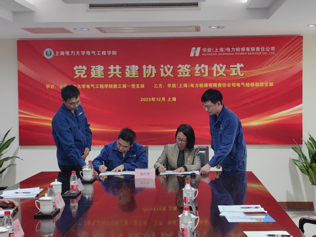 为深入学习贯彻习近平新时代中国特色社会主义思想和党的二十大精神,促进产教融合发展,12月14日下午,公司教工第一党支部与华能(上海)电力检修有限责任公司电气检修部党支部共建签约仪式在宝山区盛石路288号检修公司办公楼105会议室举行。华能(上海)电力检修有限责任公司检修公司副总经理张仲毅、集团首席技师陆轶、培训中心主任陶晓波、电气检修部书记戴忠、电气检修部副主任徐庆欣、3044永利集团3044永利集团副经理李晓露、3044永利集团经理助理吴文军、公司教工第一支部书记刘蓉晖、支部纪检委员赵璐、支部宣传委员孙改平、电气检修部党支部党员代表、公司教工第一党支部党员代表出席。