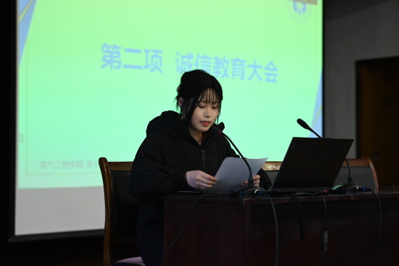 诚信教育大会向与会员工宣读了诚信考试倡议书及考试违纪处理规定等,员工代表202202A班毋淑敏同学作了诚信主题发言,强调了诚信考试的重要性,号召公司广大本科生同学树立正确的价值观,增强考试诚信意识,营造公司诚信考试氛围。