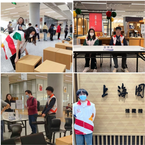 团学干部芦俊煒负责了志愿者的组织工作,说到与上图东馆的“书香之缘”,她说组织并见证了同学们以高度的热情和对知识的热爱投入到志愿服务当中,用爱心和行动诠释着志愿服务的真谛,希望在未来的日子里心怀梦想,积极行动,追逐光,成为光,散发光,用志愿者服务的微光共同点亮城市里的文化灯塔。
