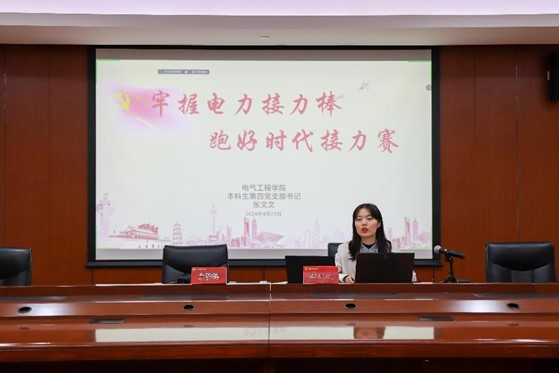 接着,张文文以“牢握电力接力棒,跑好时代接力赛”为主题,以杨树浦发电站以及王孝和同志的例子,展示了上电人的爱国精神和革命精神;以黄大年教师团队及近年本硕毕业就业情况展示了上电人科教育人的成果;以海上风力发电站展示了上电人勇攀科研科创高峰的精神。作为新时代的上电人,应当赓续红色血脉,始终牢记个人发展与行业发展和国家发展同向同行,要坚持以习近平新时代中国特色社会主义思想为引领,在能源电力行业战略转型的背景下,立足电力,服务国家。