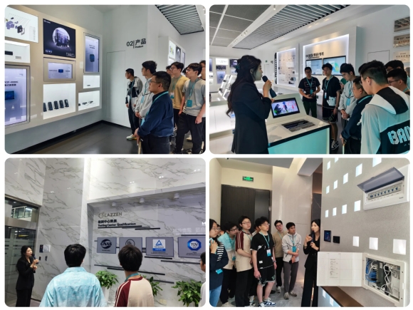 首先,师生参观了企业产品展示厅,工作人员详细讲解了企业在低压电器领域所取得的最新成果及产品情况,如智能云配电系统、智能配电箱等。随后,师生参观了企业智能家居样板间及实验中心,同学们仔细观察着产品构造及特点,对未来的智慧人居有了全新的认识。