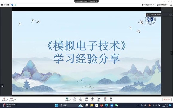 库婧文同学为大家分享了她的模电课程学习经验。她强调了《电子技术基础》模拟部分熟记解题套路,课后需要自己完整整理笔记,讲解了如何在时间和幅度上深入理解模拟信号的特点,并结合实际实验中的体会,分享了高效的学习经验;沈哲梵同学带来了他的电路课程学习心得。他认为电路的基础知识是非常重要的,包括欧姆定律、基本电路元件(如电阻、电容和电感)的特性等。确保对这些基础知识有扎实的理解,这将有助于更好地理解进阶内容,建议定期复习以巩固知识;王志远同学也分享了他在电路课程期末复习中的宝贵经验。他认为,复习时需要将平时老师布置的习题系统复习一遍,制定一个复习计划,每天花一定时间复习电路知识,不要临时抱佛脚,复习时也需要劳逸结合,避免过度劳累。