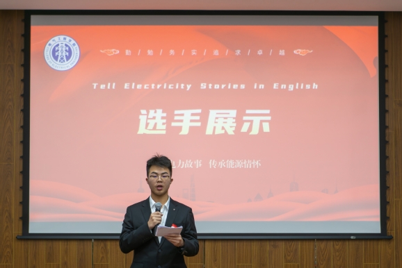 随后,紧张激烈的“用英语讲电力故事”比赛决赛开始。“用英语讲电力故事”以讲述电力故事为主线,采用英语表达的方式传承和弘扬能源电力精神。经过前期的选拔,共有11位选手脱颖而出晋级决赛。选手们用英语展现了对电力行业的热爱以及对能源电力精神的深刻理解,参赛选手的精彩演讲获得在场师生的阵阵掌声。