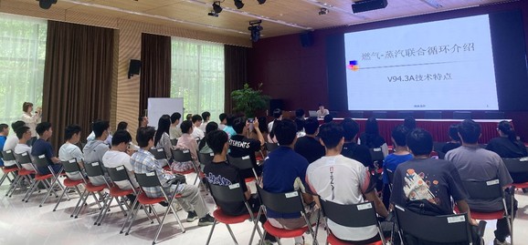 在集中学习环节,工程师首先向同学们讲解了燃气-蒸汽联合循环的相关知识,从联合循环机组的特点、燃气轮机发展历程及现状、燃气电厂的分类和分布、西门子燃气轮机的技术特点四方面进行了介绍。在参观学习环节,同学们先后参观了集控室、生产区和余热锅炉等园区设施,了解了发电的原理和过程,感受到了理论与实践相结合的重要性,也更加明白了发展能源电力行业核心技术的意义和价值。