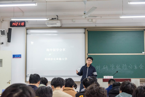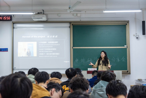 经验交流环节,2023级海外研学员工代表周禹杰、王若菡、吴文彬作分享交流。周禹杰暑期参加了赫特福德游学项目,他从“衣、食、住、行”等方面为同学们介绍了英国的生活方式。王若菡暑期前往瑞士日内瓦联合国,她介绍了联合国的办公环境,分享了参会体验,着重分析了联合国在国际舞台的角色与定位。吴文彬暑期走进思克莱德大学,就思大学习项目、出国学习注意事项、出国的证件准备、出入境要求等方面为同学们进行讲解,并回答了同学们关心的问题。