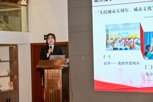 公司老员工理论宣讲比赛一等奖获奖成员沈怡冰以地理电力人的视角,作青年参与美丽中国建设的美好愿景的现场宣讲;成员全彭莹从自身暑期社会实践参与杨浦住宅小区“花邻里”微花园改造出发,讲述青年参与“人民城市人民建”实践的感悟。