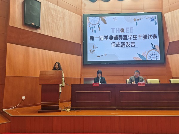 新一届学业辅导室干部代表、网络宣传部部长徐志清发言,表达了积极履行职责,认真工作的态度和决心;学风专项负责教师孙攀峰传达布置了新学期院内各项学风工作安排,强调了重点学风工作任务和要求。